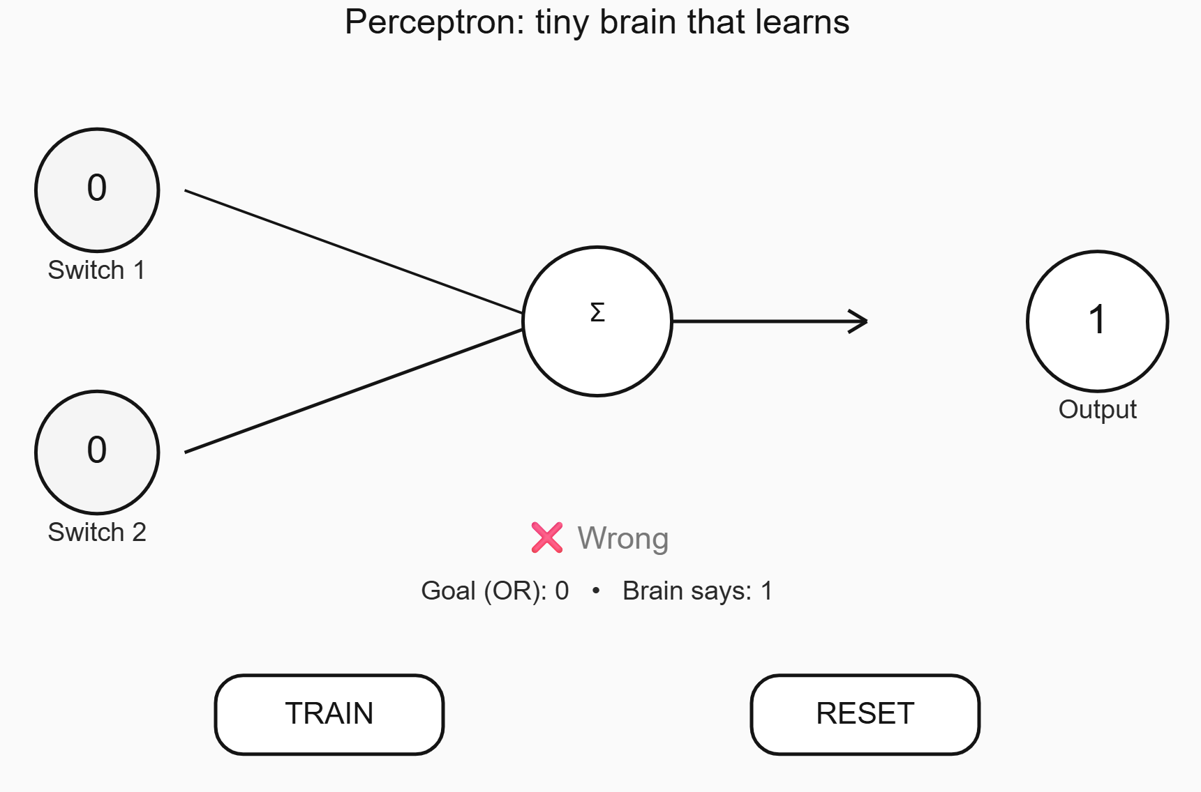 text(`Goal (OR): ${target} • Brain says: ${yhat}`, width / 2, height * 0.68);