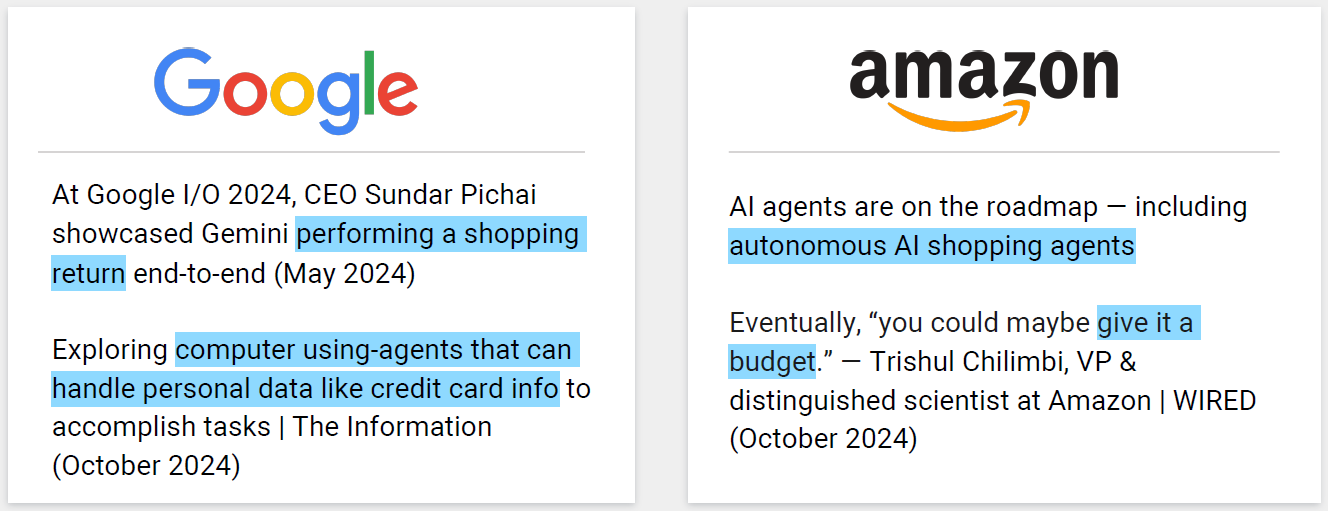 As big players like Google and Amazon experiment with AI-driven shopping and crypto emerge as the backbone of agent-to-agent payments, we are on the cusp of a new era. In this future, AI agents won’t just facilitate commerce—they will actively participate in it, creating a seamless, intelligent ecosystem.