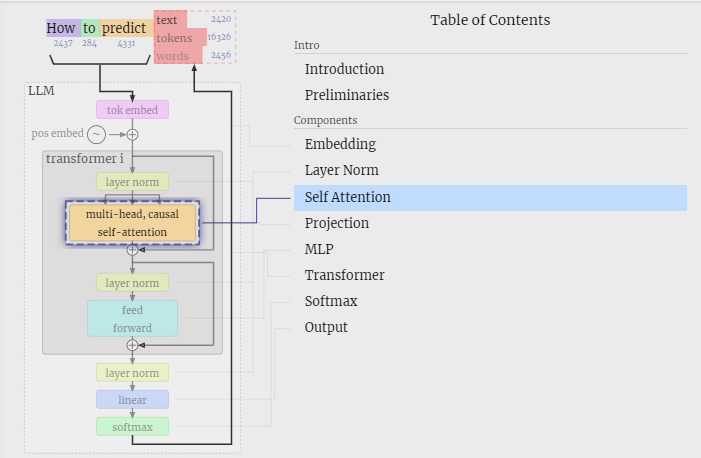 Understanding the inner workings of large language models, from token embeddings to self-attention, with a simplified visual tool.